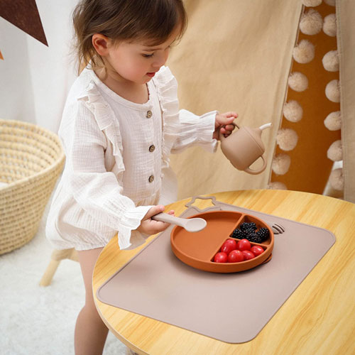 1、隨意折疊更(gèng)便捷,矽膠材質(zhì)不褶皺(zhòu)、防滑設(shè)計、穩固防滑餐墊安穩的貼(tiē)在桌(zhuō)麵上。