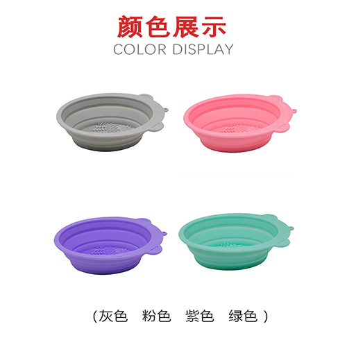 ①打開(kāi)折疊(dié)的洗刷碗,倒入粉(fěn)撲清洗劑(jì),幹(gàn)濕兩用